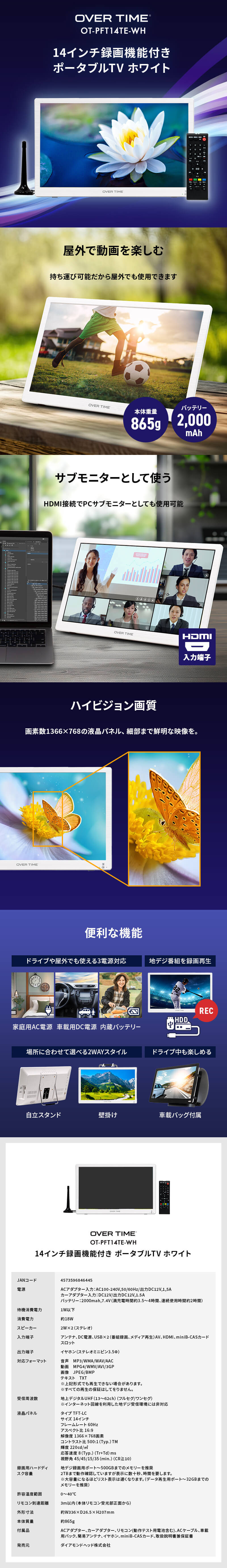 - OVER TIME 14インチ録画機能付きポータブルTV ホワイト