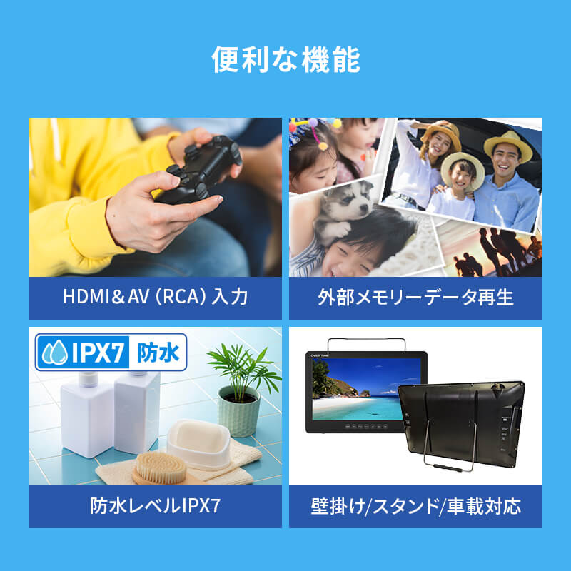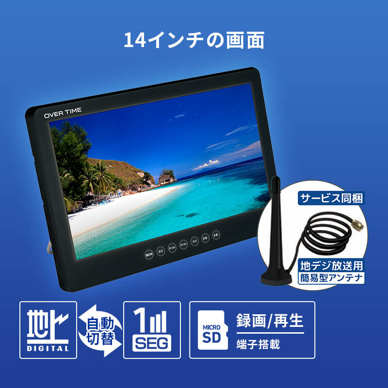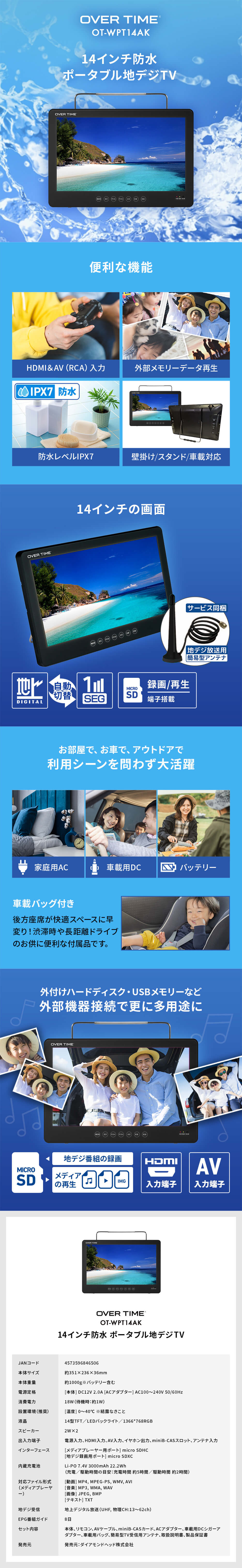 - OVER TIME 14インチ防水ポータブル地デジTV