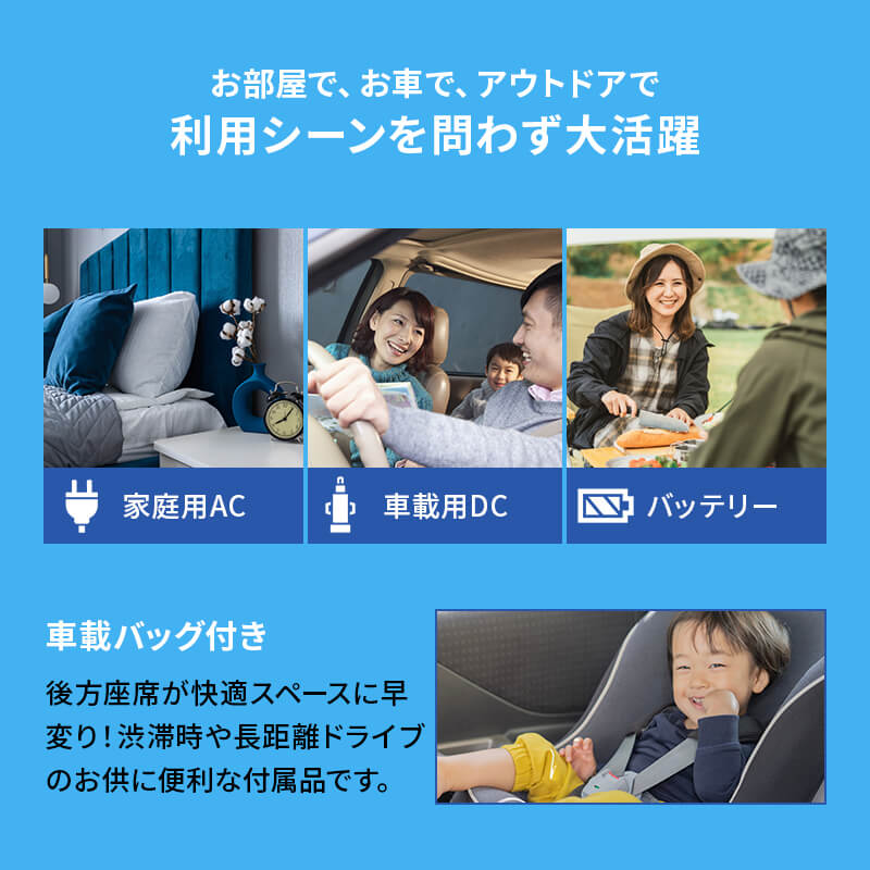 リビング·寝室·お車·アウトドアなど、お好みの場所でご利用いただけます。