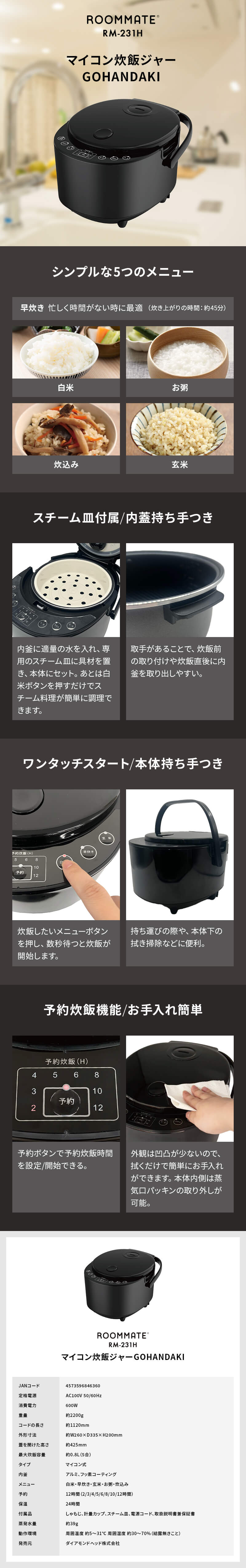 予約炊飯機能/お手入れ簡単