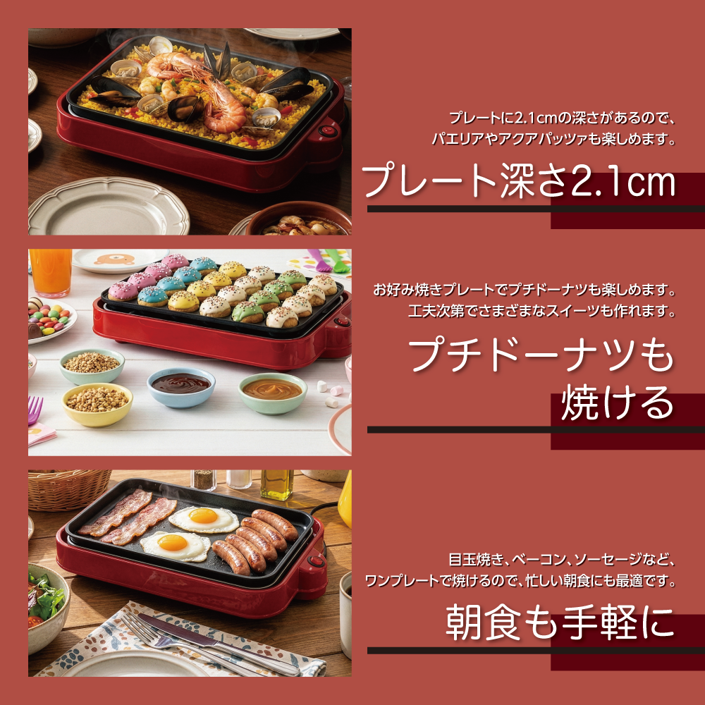 3種のプレートで多彩な調理
