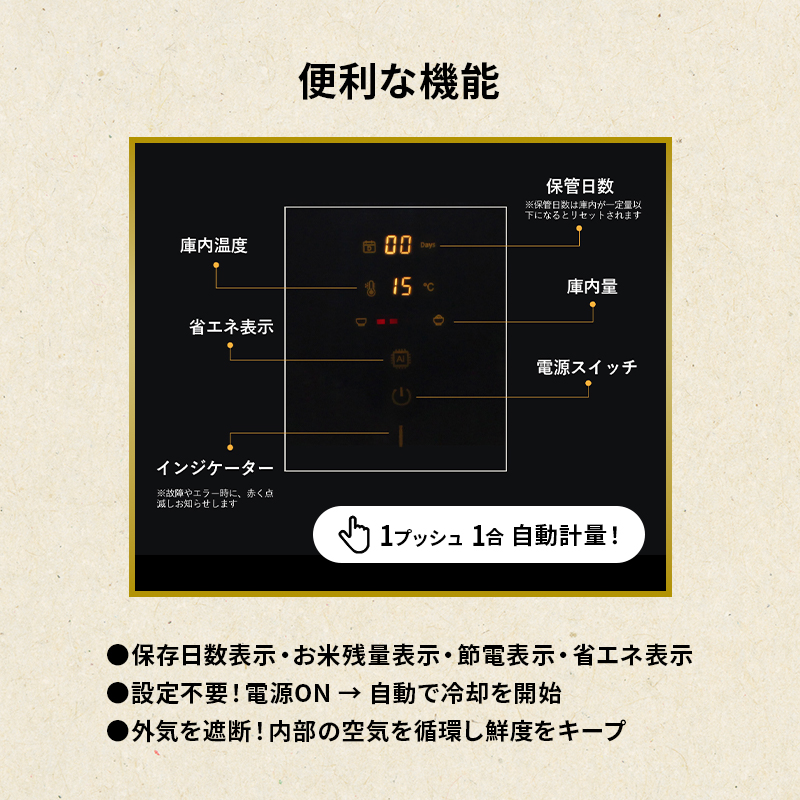 ●保存日数表示・お米残量表示・節電表示・省エネ表示
