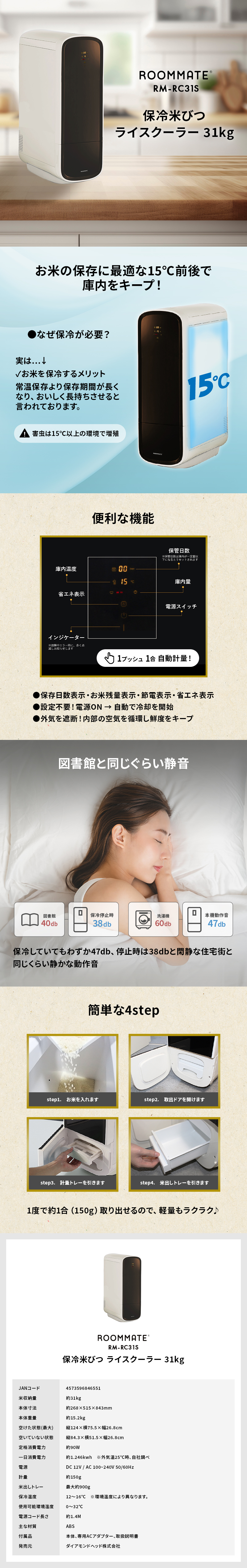 - ROOMMATE 保冷米びつ ライスクーラー 31kg
